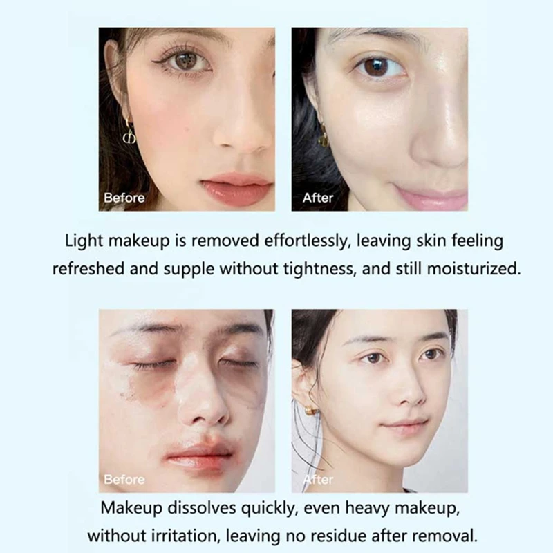 Le maquillage léger et même le maquillage lourd se dissolvent rapidement sans irritation et ne laissent aucun résidu.