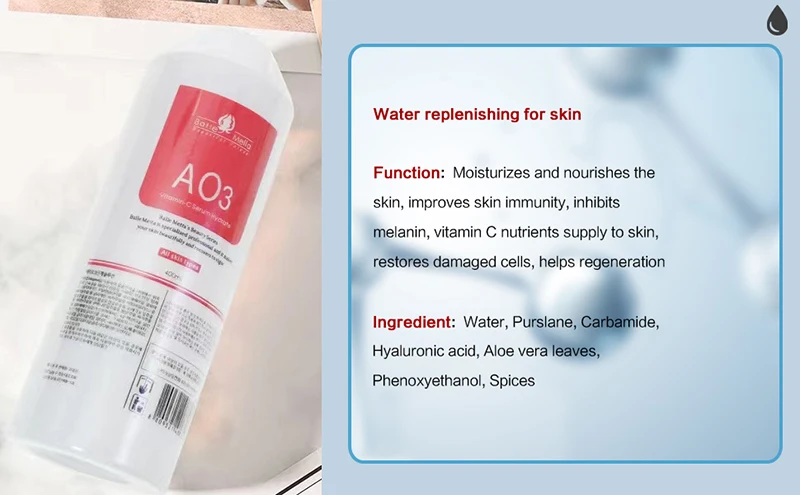 Il améliore l'immunité de la peau, supprime la mélanine et fournit des nutriments. Chaque bouteille peut servir en moyenne 10 clients, idéal pour les salons de beauté et les machines Hydra Peel.